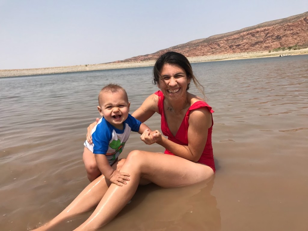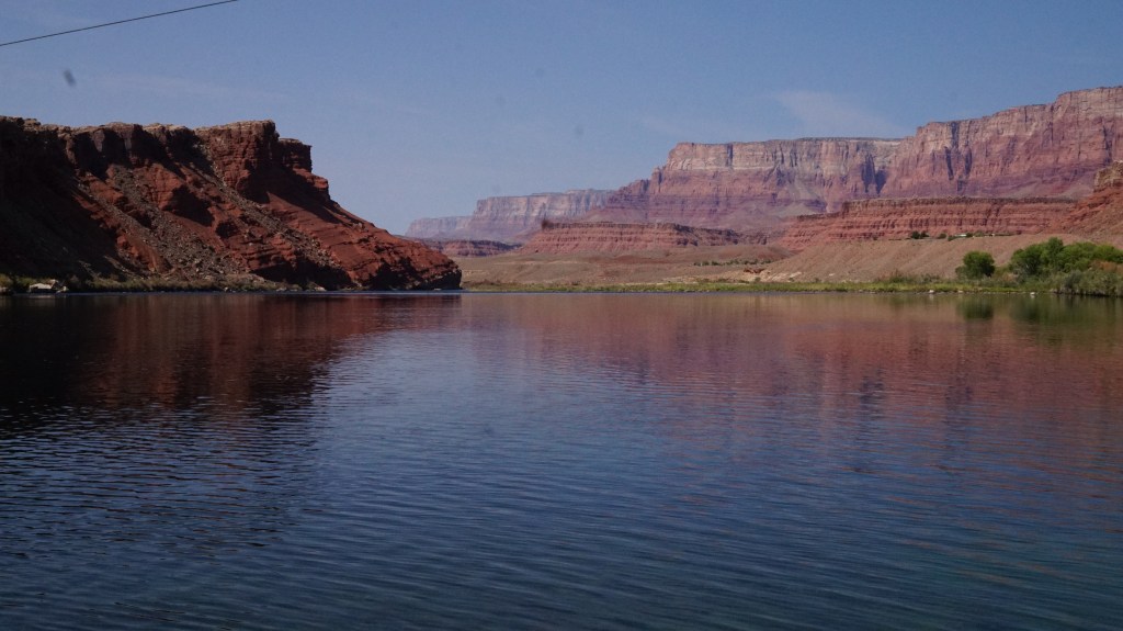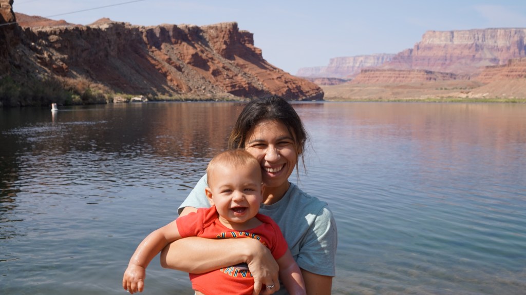 We had initially planned on spending three days in Page, but ended up cutting it short after two because it was incredibly hot with very little to do indoors during the middle of the day. That became a problem for us with the munchkin, so we improvised. What Page does have going for it, the temperature notwithstanding, are what my husband says were the coolest hikes of the trip. Our first morning we spent at the Cathedral Wash, a long, winding dry river bed that gets deeper and deeper into the rockbed the further you scramble along. With the little guy in our hiking backpack it was easy enough to manage the rocks for about three quarters of a mile, but we turned around after that as the sun was getting higher in the sky. It is definitely worth a visit, even if you just go a little ways, because of the way the walls of the river bed seem to grow around you. After that we stopped at Lee’s Ferry on the Colorado River and cooled off as the rafters were setting out on their Grand Canyon rafting expeditions.
