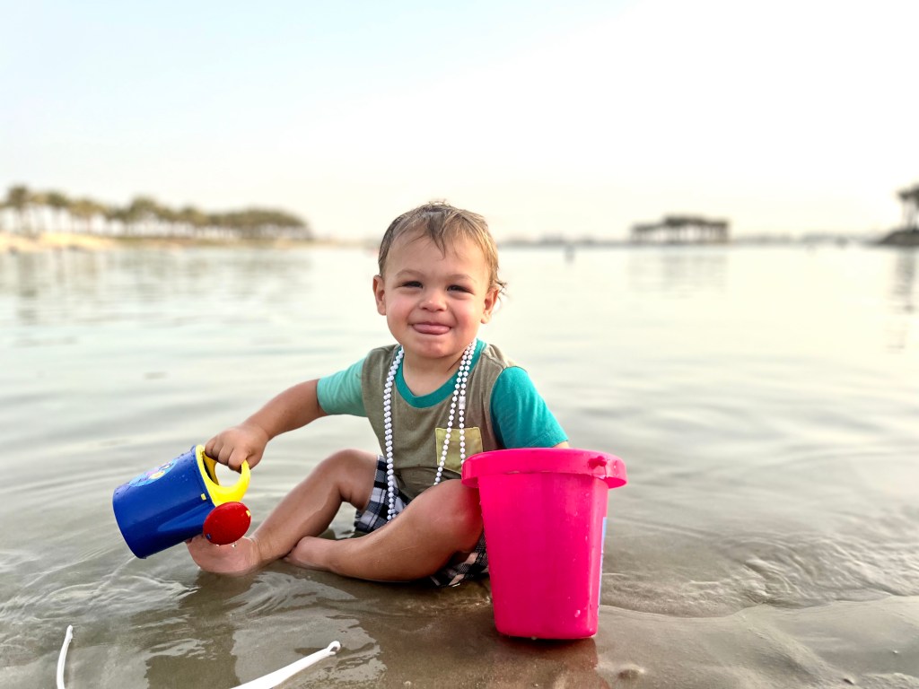 – The Beach. Although there is not as much of a beach culture in Bahrain as there is in the U.S., there are many resorts on the island that make it easy to jump back into enjoying beachy vibes. Our favorite beach has been at the Art Rotana. Milo loves wading in the water and playing in the sand when we visit. Because I’m a perpetual beach bum we go often! He also loves going down the water slides here… he even tries to go off the big kid ones sneakily whenever he can.