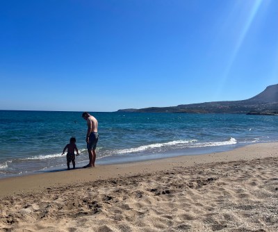 - Convenience: instead of usual schlepping strollers and baby backpacks around our typical destinations our spot in Crete was an Airbnb apartment above a beachfront Tavern (with playground) in the center of a bustling seaside town. Because of this our beach and food endeavors were just steps away, while epic hikes were only a 20-minute drive away. This convenience that Crete offered with our stay cut down on planning and allowed us to simply enjoy the moments at the beach and in the mountains.