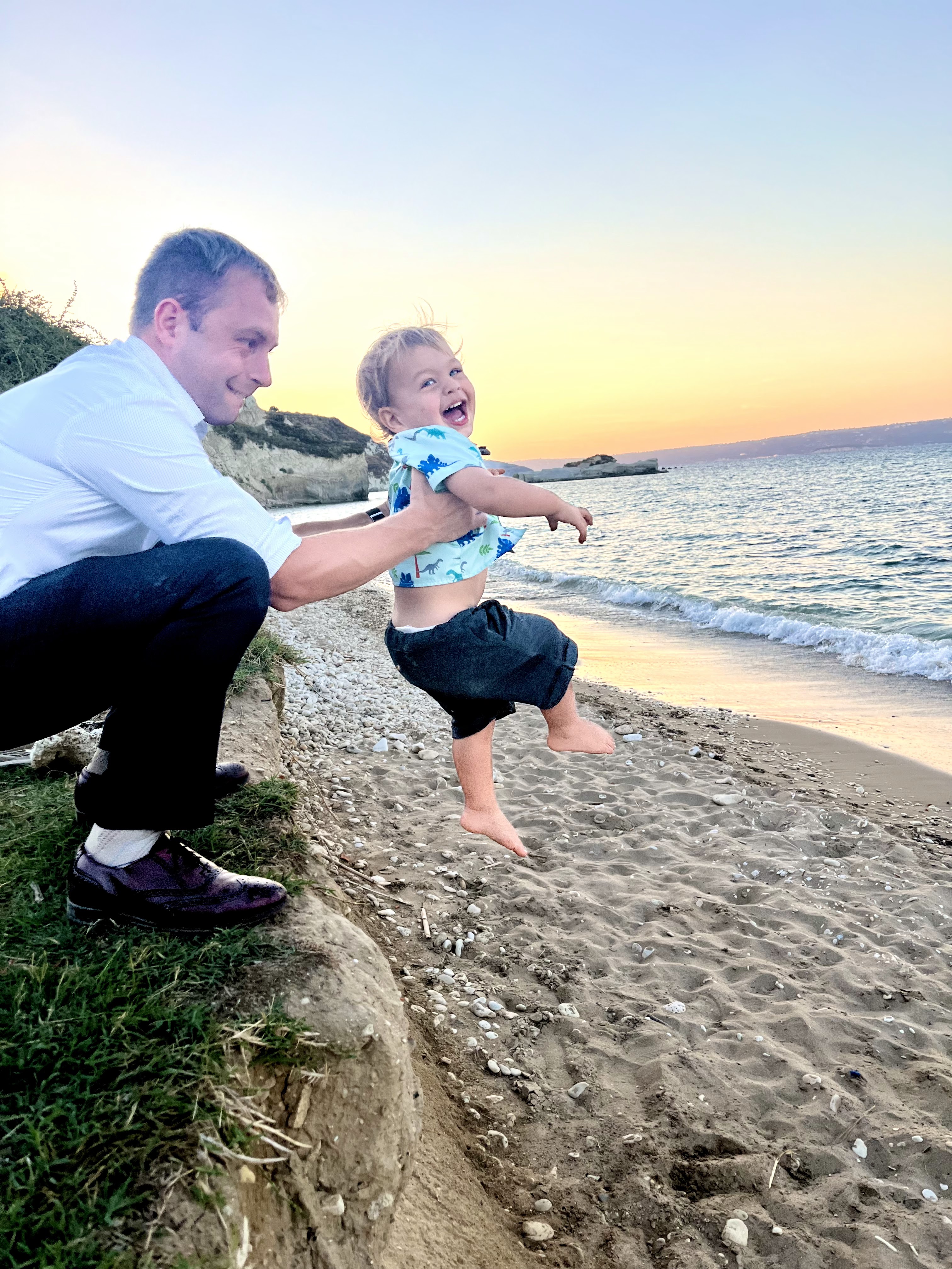 - Dimitris Taverna in Almyrinda, Crete: This was our favorite spot to eat by far because of the atmosphere (Thanks to Greg and Isaac for having a pre-wedding celebration here). The taverna butts up to the ocean, has one amazing sunset view, and has lots of fun slides and play structures for kids. But, really our favorite part was watching Milo fall in love with greek music and a Cretan singer throughout our dinner. Watching Milo bust his moves on a table beside the band was one of the best memories.